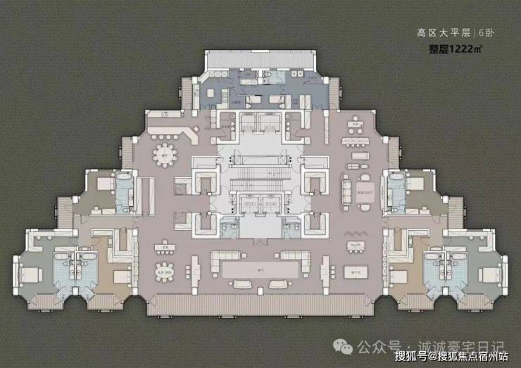 一号楼内的户型为建面约553-1222㎡