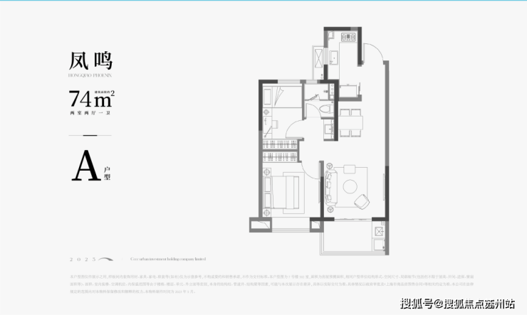 建面约74㎡2房2厅1卫