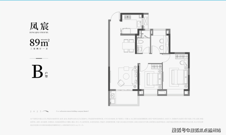 建面约89㎡3房2厅1卫