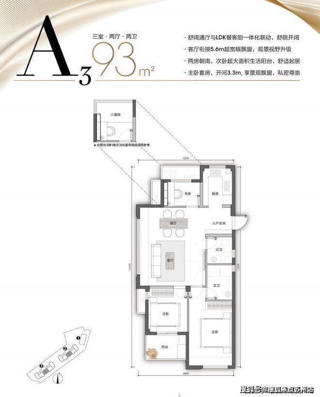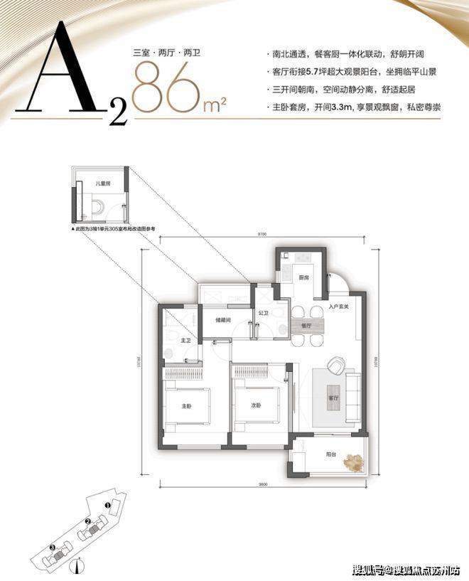 - 房型:涵盖56平方米、86平方米和93平方米的小洋房,共3幢多层建筑