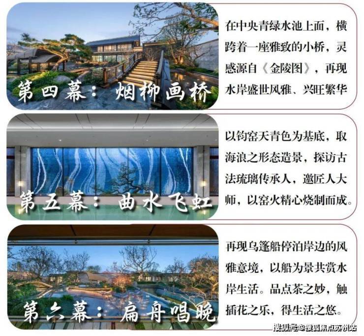 整个示范区集美学大成者,社区场景上花费大量心思打造,以建筑形态,用 东方审美革新美学标准,创新升级,展示中心打造了 “风雅三进,行舟六幕”的场景: