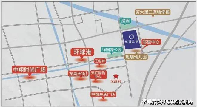 西侧约1km:云集12万方天虹购物中心、16万方环球港、19万方王府井、在建21万方龙湖天街;向西自驾约10分钟:大悦春风里;东行约15分钟到达园区的苏州中心及久光百货;另,项目南侧一路之隔,规划邻里中心。