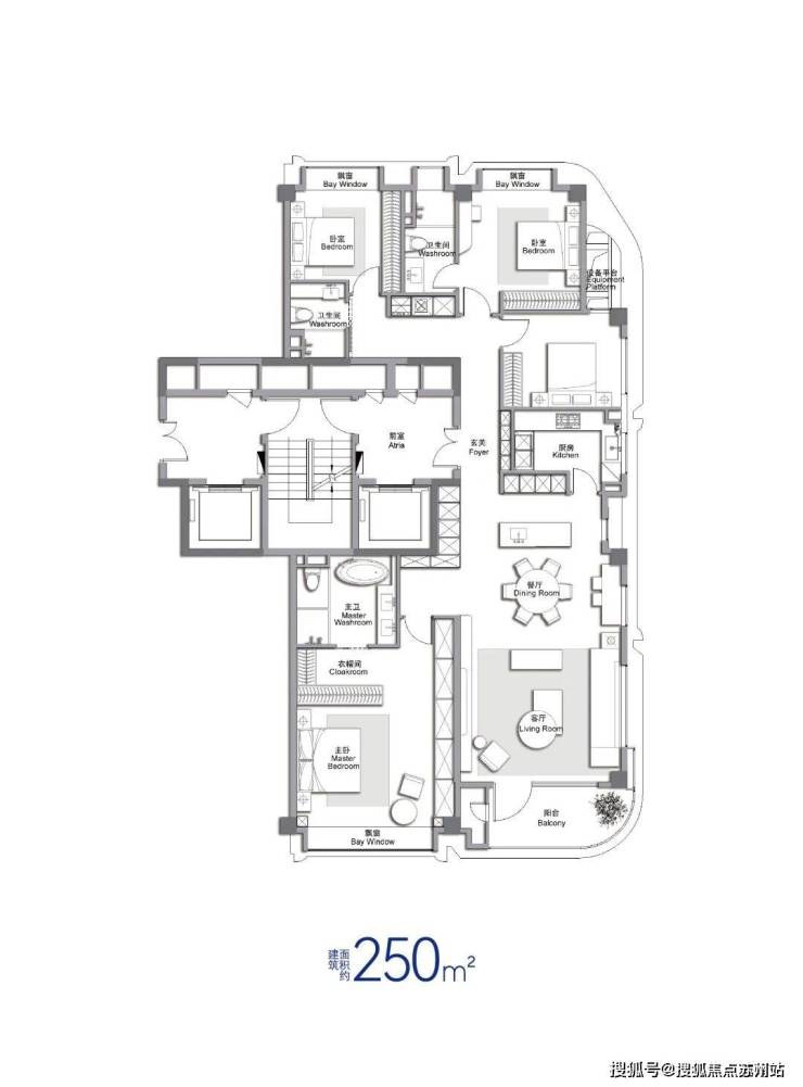 建筑面积约249㎡:270度全景采光,奢适与功能的完美平衡。