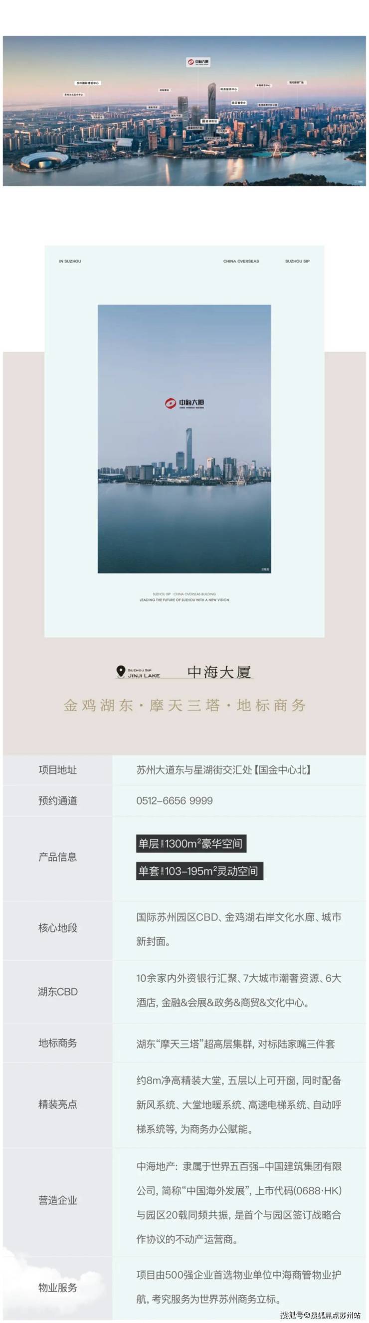 伫立面向世界的园区,与这片热土的流光溢彩并肩而行。中海大厦,金鸡湖东·摩天三塔·地标商务,汇集世界财富往来,焕发商务全新光彩,开盘热售,静待争藏!