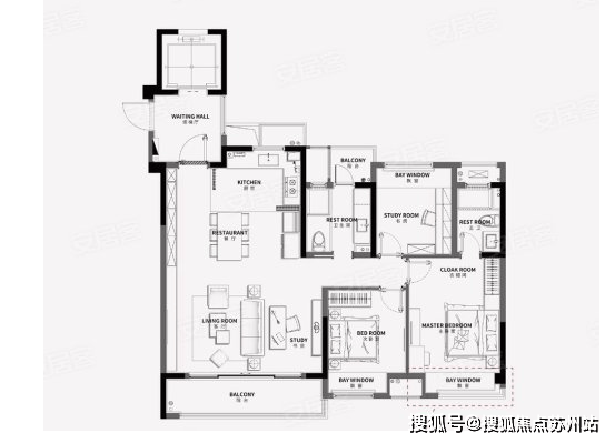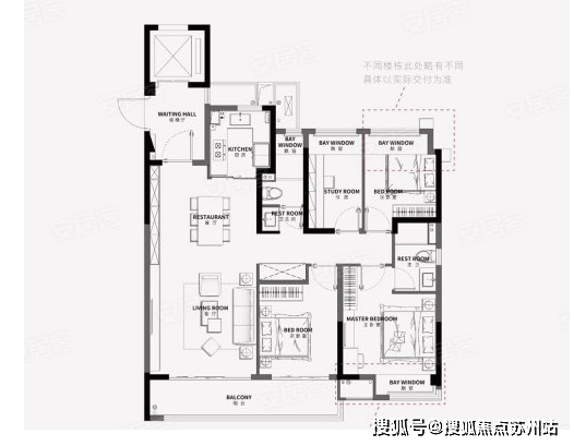 户内楼面高度不一致,错开之处有楼梯联系。但没有完全分为两层。(适合大面积住宅,小户型会显得局促)