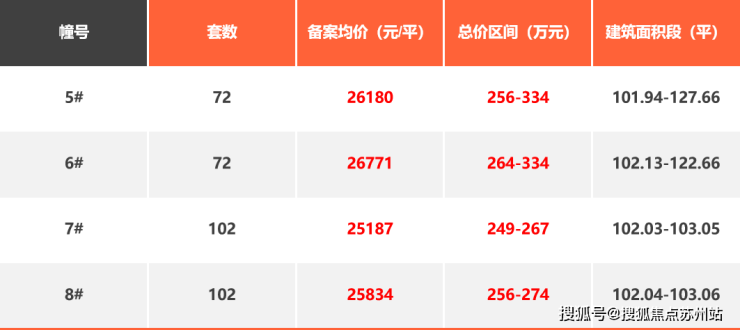 小高层:5#、6#,共计144套住宅房源,整体备案均价26474元/平,总价区间在256-334万元;