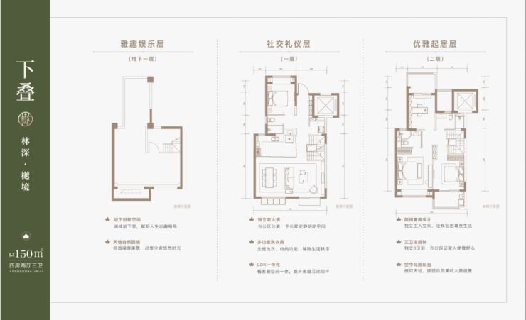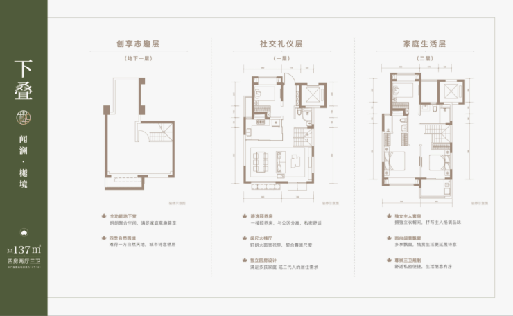 下叠附带全功能的地下室,可以打造成百变储藏室、茶室、会客厅、多功能影厅等.