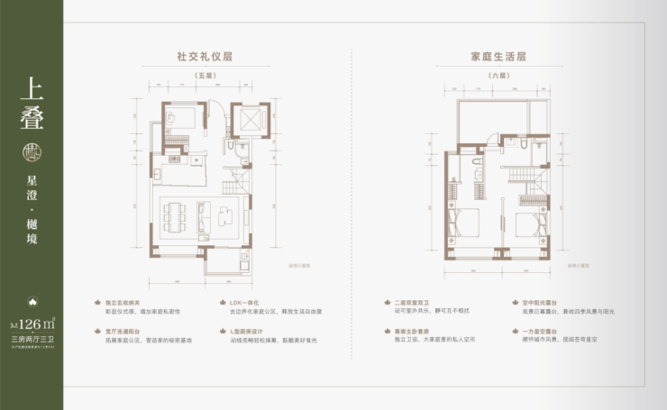 上叠产品都是带有空中花园露台,日常聚餐、烧烤、开party等娱乐活动有大展拳脚的空间,同时客餐厅一体化+U型厨房空间+尊崇主卧套房,户型设计合理,格局方正.