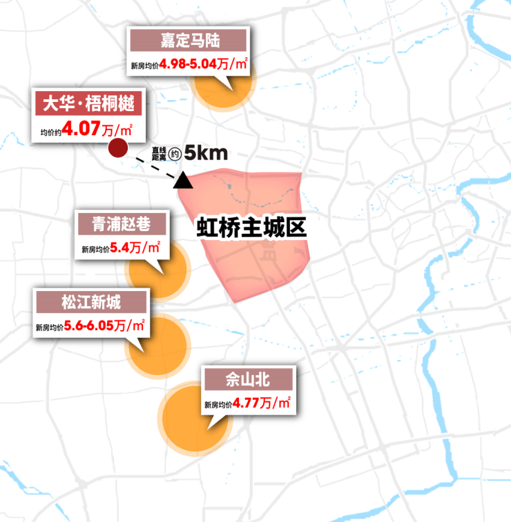 「大华梧桐樾|越界」,位于嘉定的核芯区位,与虹桥主城区核心距离也只有5km!