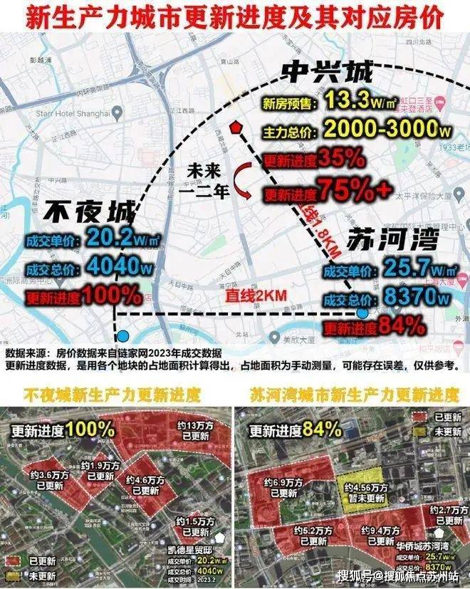 目前,中兴城南侧苏河湾、不夜城片区新生产力更新进度84%-100%区域,房价已经突破20W/㎡。