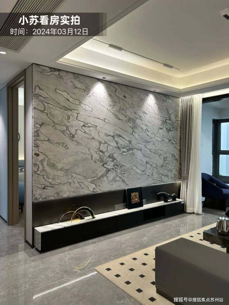 客厅背景墙选用定制岩板;