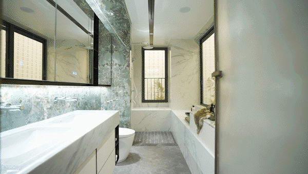 卫浴就更是大牌云集了,唯宝的淋浴花洒、台面龙头;高仪的台盆、主卫智能马桶,都是豪宅的标配。