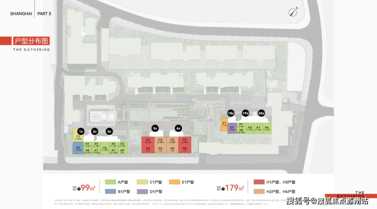 项目由6栋9-27层住宅+1栋8-14层保障房+4栋5F办公+部分商业以及配套用房组成。住宅产品面积主要有约99㎡、179㎡两种。