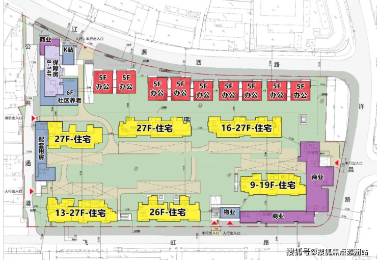 项目包括1#~6#楼为6幢层高为13-27层不等的高层住宅;7#楼为养老设施和保障性住房;8#~11#楼5层的多层办公;3#楼辅楼多层商业。
