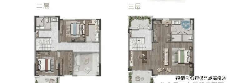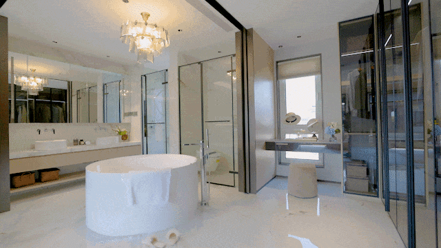 三层可以说是更为震撼的,这一层是专属于主人的天地。整体宽敞明亮,步入式衣帽间、中央圆形浴缸布置如酒店般舒适精致,独立起居室给生活倍添仪式感。