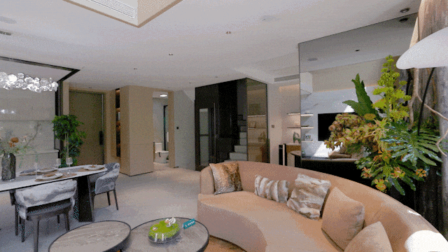 对于联排来说,地下室是充满惊喜的自由空间。这次我们看到的样板间的层高达到了约5.6米,您可以在此设置游戏区、健身区和酒吧区等等。天井墙面及楼梯下的绿植景观将自然气息引入室内。