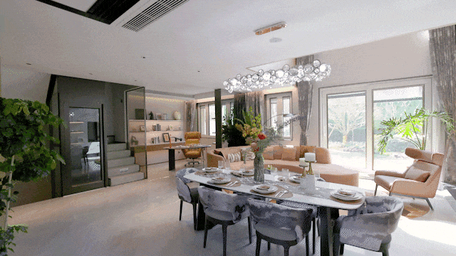空间因承载着人居理想而更考究。院子里的花不经意间闯入眼帘,独立入户与志同道合的邻里亲密有间; 层高约5.6米地下室,层高约3.3米首层空间,襟怀墅境高度与气度。用挑剔的眼光精研每个细节,理性的规划与对完美的追求,在此兑现关于家的设想与追求。
