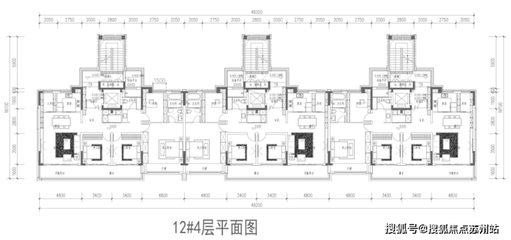 四开间朝南,三房朝南,次卧面宽3.4m;主卧大套房设计,4.8m大面宽。