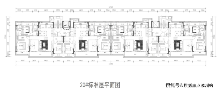 户型二位于20#,一梯二户,同样为4房2厅2卫。