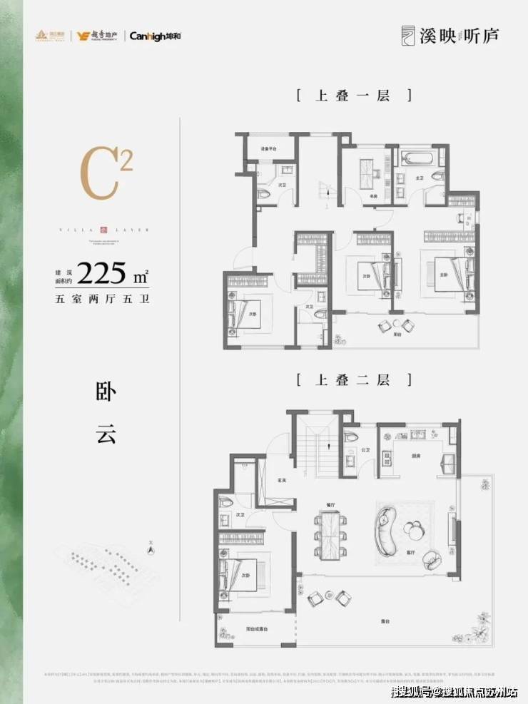 :主力户型为建面约200-260平方米的叠墅,包含5室2厅设计,南北通透,动静分离。