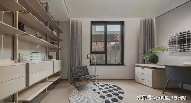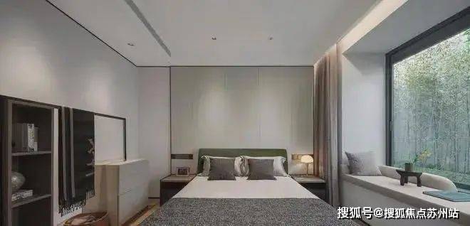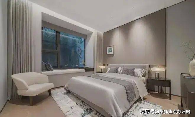 主卧室空间舒适怡人,采用浅色系装饰空间,独立书房和办公区,丰富居者使用场景。