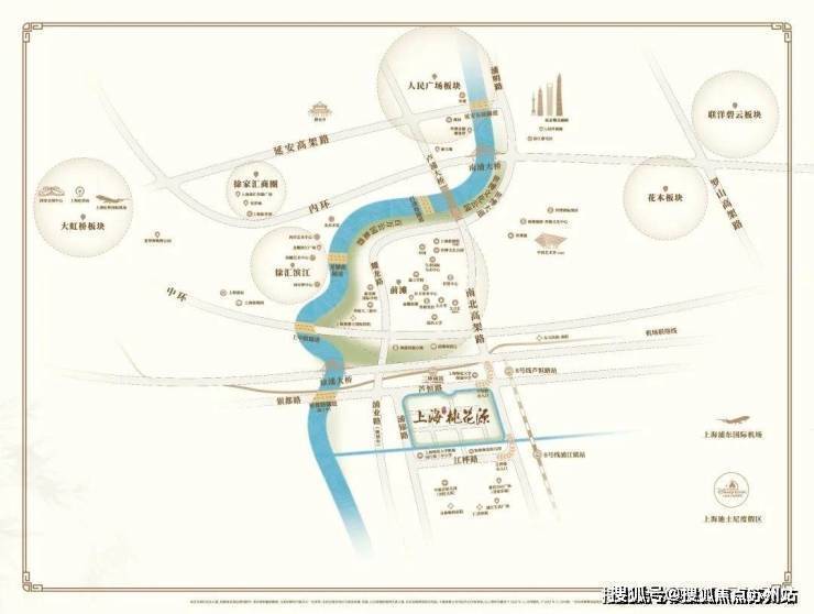 「上海桃花源」位于黄浦江以东的闵行区浦锦街道,是前滩板块旁的首席配套居住区.在济阳路高架开通后,开车快速可达前滩,还可以车行方便速达人民广场、南京西路、百年外滩、陆家嘴国金中心、淮海路IFC、新天地商圈、联洋碧云国际社区、徐家汇恒隆广场,可以说是融合浦西浦东真正精华的地段!