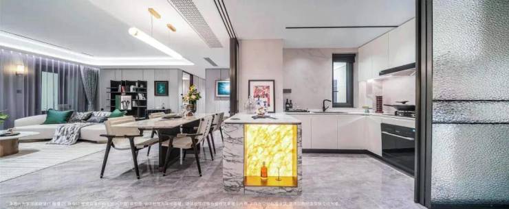 无论大小户型,厨房岛台都是标准配置,大面积岩板同样是交付标准;
