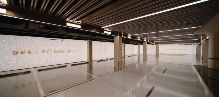 过去在豪宅项目才能看到的类似于“星空顶”地下车库坡道,招商臻境使用了看来更加高级的香槟金色吊顶,并加上穹顶闪耀的“追光”坡道!