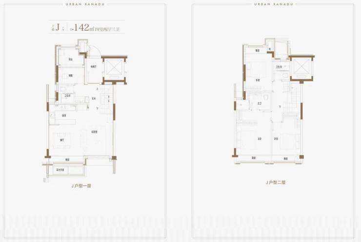 建面约139㎡上叠户型,三层是会客区,四层是居住区,阳台+露台+多个飘窗设计,附加空间非常大,在别墅类产品中实属罕见!