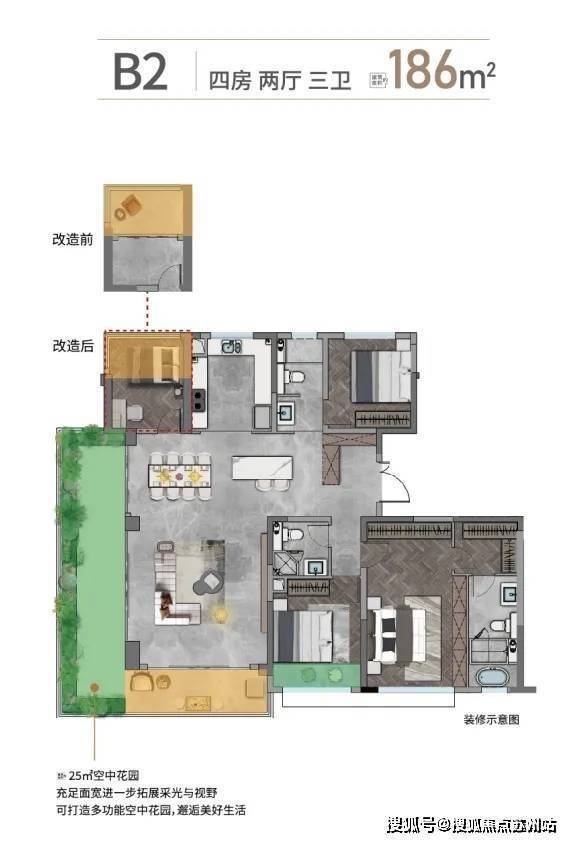 效果图建面约186㎡四房两厅三卫