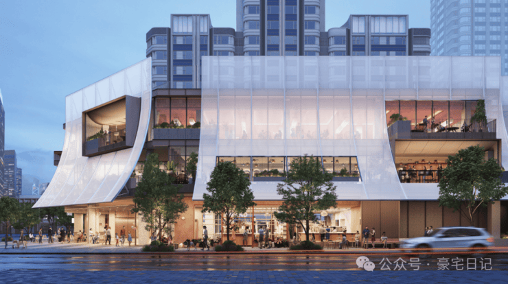 会所由琚宾老师操刀,面积约2000㎡,地上大堂面积700+㎡,地下大堂面积1700+㎡(不含架空层),架空层面积约1700㎡,“楼王”架空层800㎡+;采用美学弧形玻璃+流光幻彩铝板,高施工难度与成本,换来极具冲击力的未来感外观;配备餐酒吧设备、艺术光厅、上海首个度假感植物园泳池,并围绕女性业主的需求打造女性友好健身房,专属设计了适配女性的器械,如Eleiko多功能架、瑜伽室、补妆间等,同时提供健康管理服务.