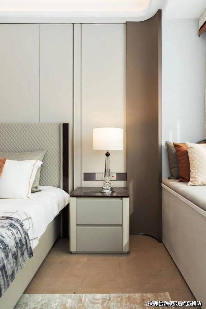 私密场域依旧保持静谧,黑白色基础上搭配了更多的色彩,例如深棕、浅紫等,艺术品的衬托深邃迷人,热络了家的氛围。