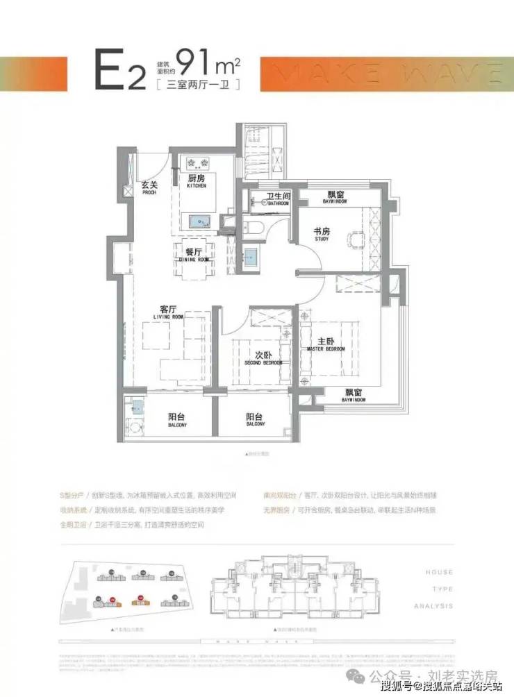 “南向双阳台+南北双飘窗”,构筑真3房户型!