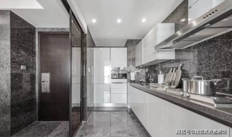 建筑方面,白金湾府邸采用现代风格设计,外立面简洁不做过多的装饰,采用黑干挂石材,内衬XPS保温板,东西转角采用玻璃幕墙设计,可以270度观察黄浦江景色。