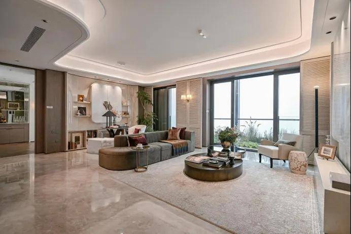 1、【巨幕景观客厅】更宽的客厅面宽约5.65m,和市面上180平左右的客厅面宽差不多。客厅大面宽带来阳光全天候洒满客厅,每一天都沐浴在温暖的阳光中。