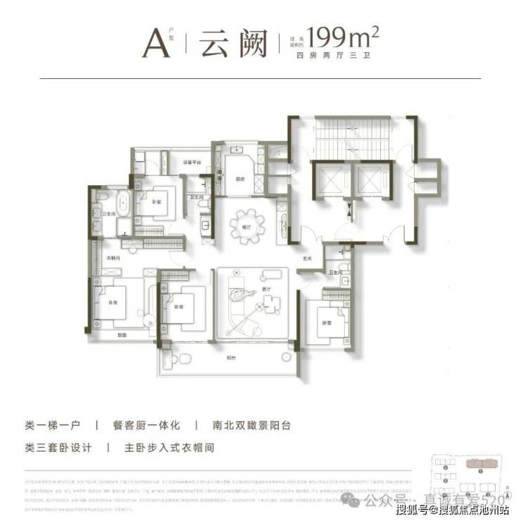 高层199㎡大平层:类一梯一户设计,南向四开间、7.2米跑道式阳台,层高3.15米,打造“空中院墅”概念;精装采用大金中央空调、博世厨电及全屋奢石饰面,实现“博物馆级”居住质感