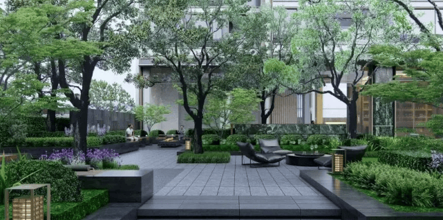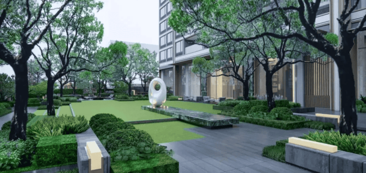 四重森境花园(水景叠石、中央草坪、林荫步道)