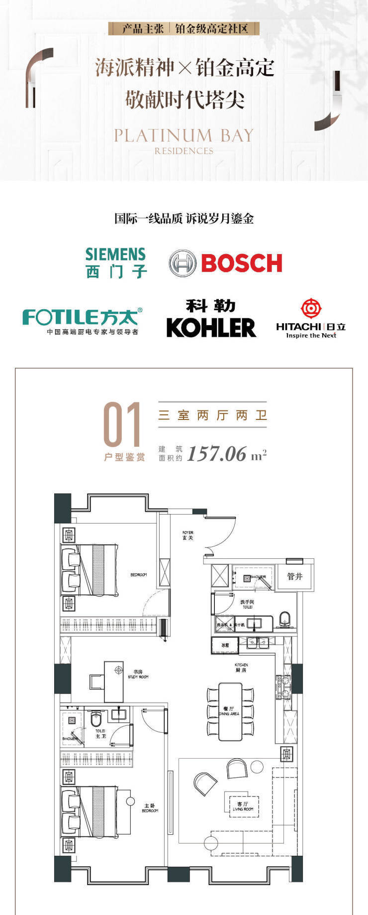 虹口北外滩铂湾公寓——全新首开·精装修拎包入住——建面121-157平