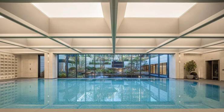 有“蓝钻之星”恒温泳池,通透的落地玻璃窗下与下沉庭院景观相互渗透,实现一年四季畅游的“游泳自由”。