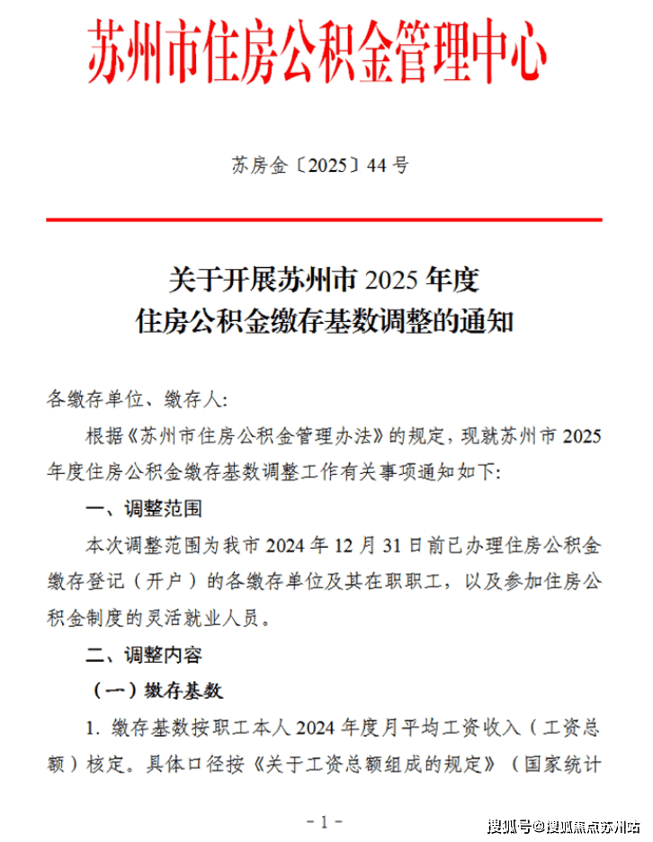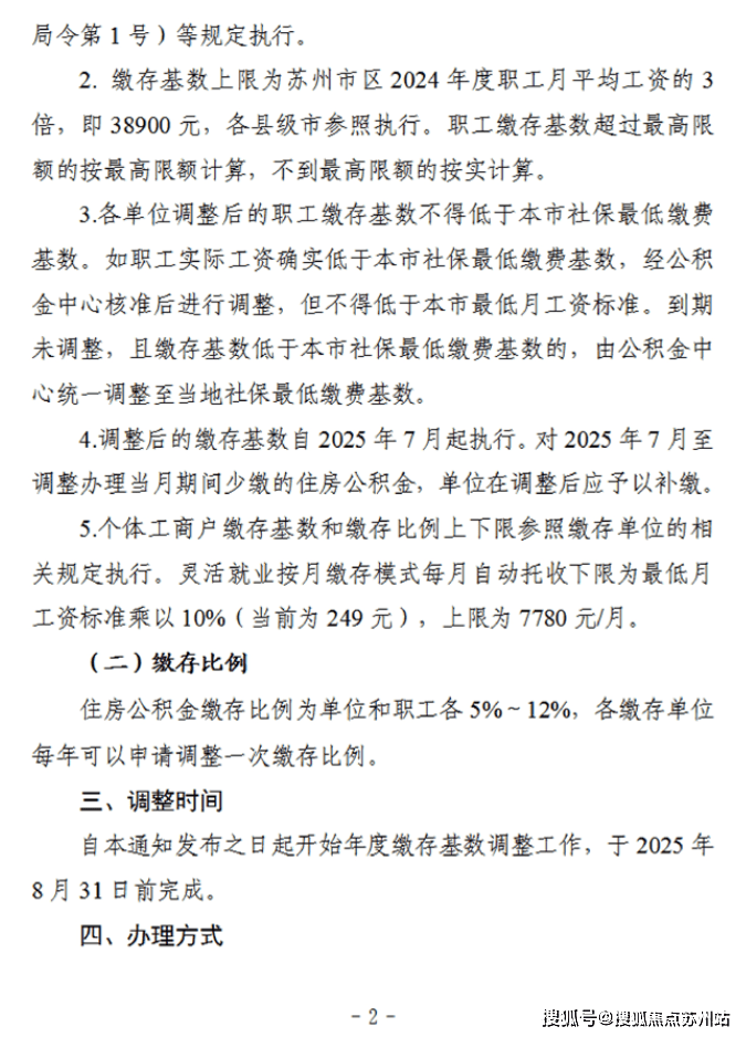 最新消息!苏州公积金缴存基数调整!苏州公积金官网刚刚发布《关于开展2025年度住房公积金缴存基数调整的通知》:2025年度缴存基数上限为苏州市区2024年度职工月平均工资的3倍,即38900元。最低不低于苏州…