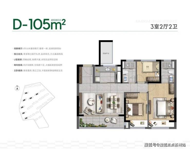 阔景横厅:约5.6米奢阔横厅,餐客一体,连接阔景阳台 独立玄关:尊享独立前厅礼序,起承转合,方正通透格局 U型厨房:流畅动线,纵横尺度,时刻互动烹饪空间 南向宽境:四开间朝南,空间感十足,大幅延展景观视野 主卧套房:星级套房,独立卫浴,丰富居者静谧精致生活