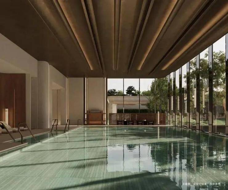 还设计了巨幅透明全景泳池、群岛会所体系,平时游泳、健身、社交,不用出社区就能享受到高奢度假体验;