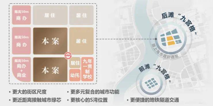 很多新兴板块都是“传统中心的延伸”,天生带着“价值下游”的标签,但世博-后滩九宫格偏不.