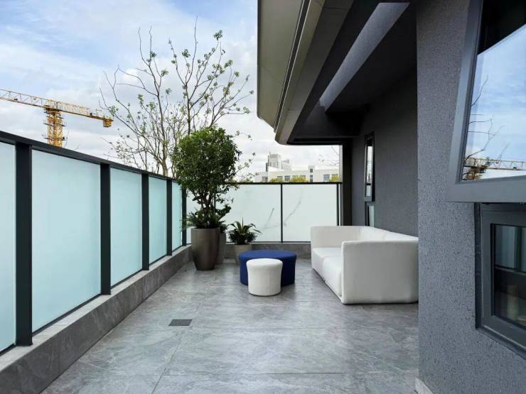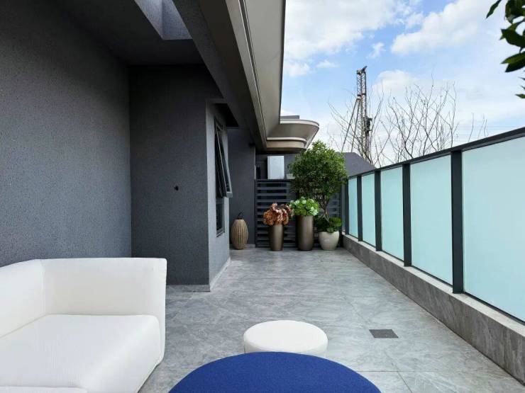 其中北露台约34㎡左右,南向露台约16㎡左右,而且露台全部都是通铺的岩板地面;