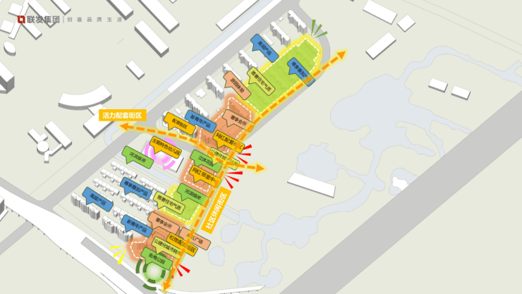 联发还将建设项目南侧约4900㎡公建配套,内含约1500㎡菜市场以及约2300㎡特色社区商业;