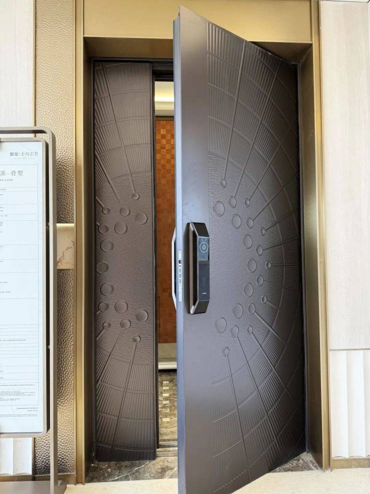 入户采用子母铸铝门并搭配华为高端智能门锁2pro,