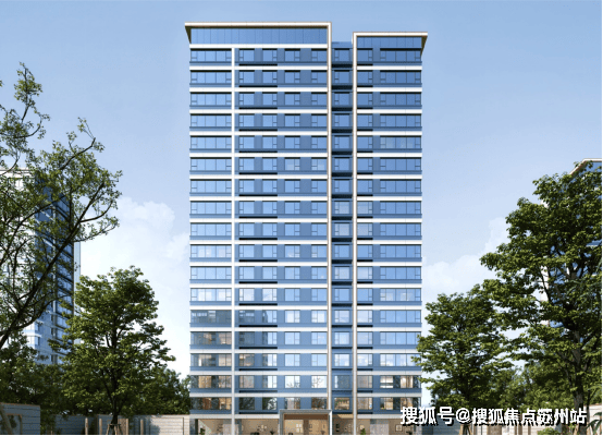 晴萃府的外立面采用深灰色涂料,部分为石材干挂和香槟色铝板干挂,这种颇具高级感的外立面,确保了建筑现代简约的风格。