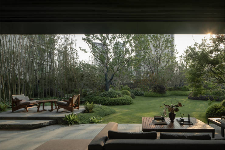 竹影摇曳、流水潺潺,江南园林在眼前徐徐展开,从隽永的官帽屋檐,到葱郁的中央庭院;从休憩坐谈的清夏园、平林原野,到全龄架空层、儿童乐园……业主恍如穿行于《姑苏十景册》的当代长卷中,这也是住区自诞生之初便许诺的 “繁华隐奢”的兑现。
