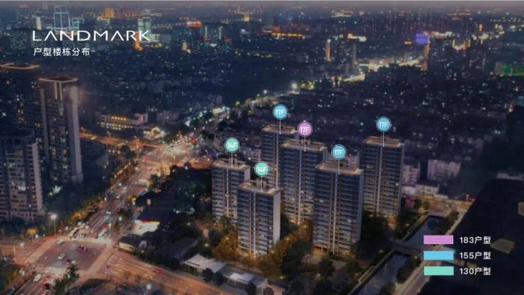 总占地面积:约1.6万方 总户数:186套 容积率:约1.8 产品类型:14-17F小高层 配置户型:约130㎡、约155㎡、约183㎡ 装修标准:精装修交付