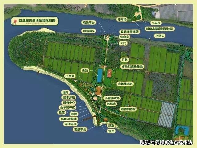 3公里外的富春江江心,绿城还租下了一个“业主私家小岛”!这个叫做“悬空沙”的宁静小岛,目前用地规划约500亩,将开辟餐厅、茶室、小木屋、农场、运动场等功能,只对业主开放。按计划,富春玫瑰园的每户业主,都能分到岛上“山弄田”的使用权。